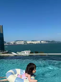 Swimming facing the sea and enjoying the Victoria Harbour view, traveling with kids can be this chill. We’ll definitely come back next time!