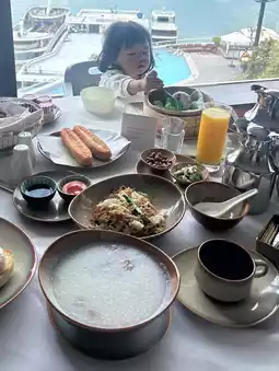 The best part is you can order breakfast to your room, complete with a baby high chair, so you don’t have to squeeze into a buffet with a toddler over one year old, saving a lot of energy! They also give a $50 dining voucher, perfect for ordering meals~