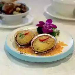 Salt and pepper baked Dalian abalone is $155 each! The abalone is palm-sized and very generous in portion. The ultra-thin salt and pepper crust tightly wraps the chewy and springy abalone, delivering a flavorful and fresh taste of high quality.