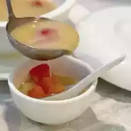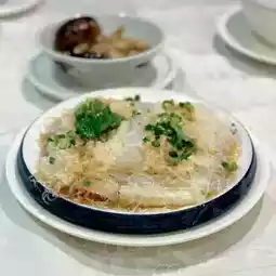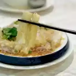 The rice broth slow-cooked scallop is $140 each! Using elegant rice broth to slowly cook fresh scallops, topped with savory Jinhua ham paste, the taste is a perfect balance of sweetness and saltiness with great depth.