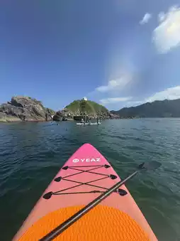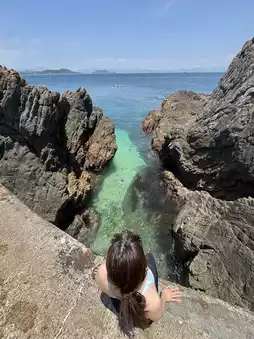 We put on our snorkeling gear and jumped into the water, instantly surrounded by colorful fish. Butterflyfish darted among the corals, and sea urchins rested quietly on the rocks. In the afternoon, we paddled around the island on stand-up paddleboards, seeing our reflections overlap with the underwater world on the glass-like sea surface.