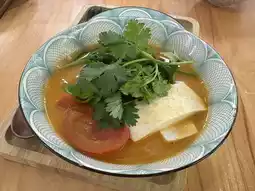 The tomato fish soup was rich but not fishy at all. The udon was chewy, with tofu and spinach as ingredients. The tofu had a particularly strong bean aroma. The whole bowl of tomato fish soup udon was delicious and nutritious, and Waffle would revisit just for it.