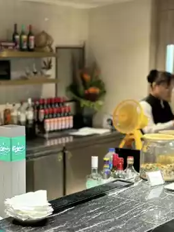 Drinks: regular spirits and New World wines, soda machine (Coke, Sprite, soda water, zero-calorie Coke), beer machine, orange juice, lemon mint water, coffee machine, tea.