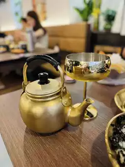 The boss lady saw we hadn’t ordered drinks and gave us some rice wine 🥹🍶. It was my first time drinking rice wine from such beautiful cups, so happy 🥹🥹💕💕.