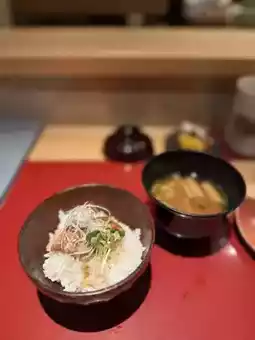 The foie gras rice is pan-seared to achieve a crispy exterior and tender interior, melting in your mouth and perfectly paired with fragrant rice. Finally, the red miso soup is rich in flavor, and the dessert is ice cream.