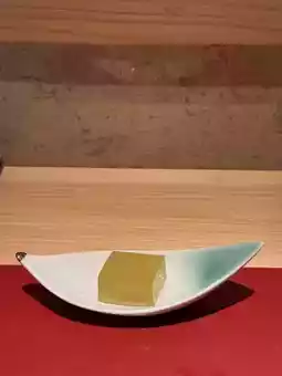 The appetizer is served in a delicate small dish featuring jellyfish with wasabi. The chawanmushi includes mantis shrimp, with the steamed egg being silky smooth and the shrimp fresh and sweet.