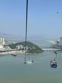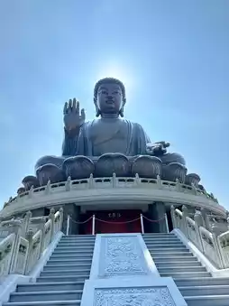 If you come to Hong Kong and want both tranquility and spectacular views, you must not miss worshiping the Tian Tan Buddha on Lantau Island! Start by riding the Ngong Ping 360 cable car in the Crystal Cabin with a transparent glass floor, allowing you to see through to the sea, mountains, and Hong Kong airport from above — every minute is a definite “wow” moment 🚡🌤