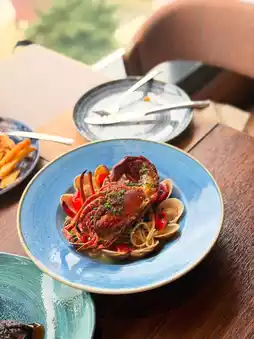 Clam pasta🍝 elevated with Boston lobster🦞; dry-aged wagyu beef is rich in flavor with tender, juicy meat.