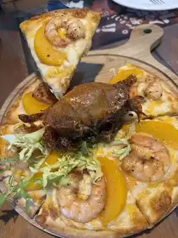 1. Soft Shell Crab, Prawn, and Peach Thousand Island Pizza