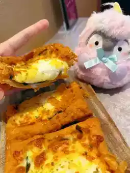 The four cheese crispy thin crust pizza has a crunchy crust and rich filling πππ The strong cheese flavor contrasts perfectly with the crispy crust. Every bite delivers a cheesy pull effect πππ satisfying all cheese lovers.