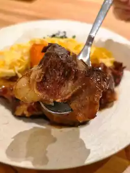 The beef short ribs are braised until they fall apart with a gentle pinch, the meat is so tender it almost melts in your mouth. The sauce is sweet with a slight kick of spice, fully infused into the meat fibers. Paired with hot white rice, every bite is a taste of happiness!