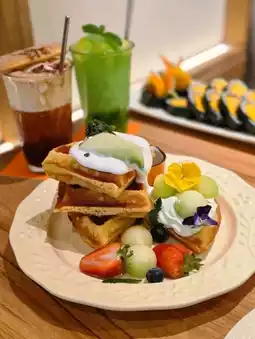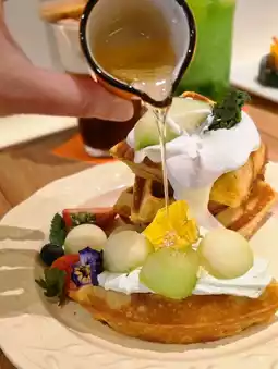 The waffle’s exterior is baked to a golden crisp, while the inside is soft and moist, paired with fresh melon chunks that are sweet and juicy! The cream is whipped lightly with a subtle melon scent, and drizzled with honey, the sweetness is just right~