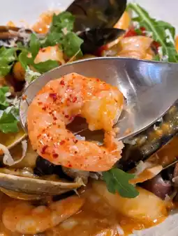 The rice cakes are chewy with a bit of a bouncy texture. The seafood variety is rich, including shrimp, mussels, and squid, all fresh and springy. The rose sauce is creamy with a hint of spiciness, offering a rich layered flavor~