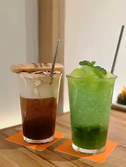 The melon smoothie is dense and smooth, with chunks of melon pulp in every sip, cool and refreshing. The coffee base is rich and aromatic; dip the finger biscuits in before eating for full satisfaction~