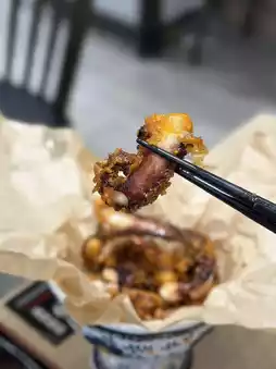 The fried items here are made to order. The squid tentacles have a perfectly balanced batter thickness, and the fried chicken pieces are juicy! The corn kernels are full of buttery aroma, making them a great snack choice.