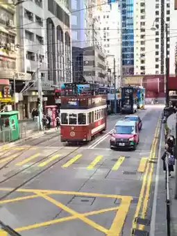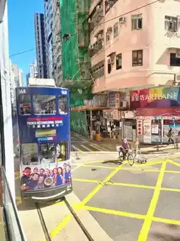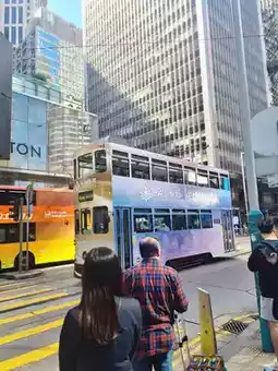 // (Board the tram from the rear without paying yet. It’s recommended to sit on the upper deck if you want to enjoy beautiful views of Hong Kong.