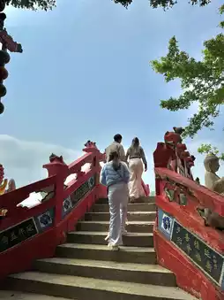 🙏🏻The Longevity Bridge is a red bridge. Cross it by stepping with your left foot first. Walk to the other side of the bridge and do not walk back the same way.