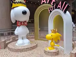 The Art for All for 75 Anniversary exhibition is currently being held at Times Square. The space is not very large, and it was packed with people when I visited. There are various types of Snoopy cartoon characters for people to enjoy and take photos with, attracting Snoopy fans. Children come to appreciate and take pictures as souvenirs. It’s a great place to visit.