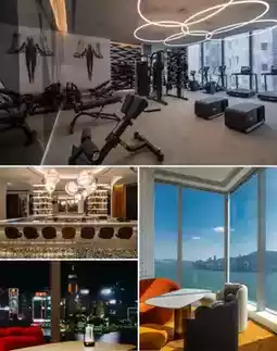 The corridor murals are eye-catching, featuring fantastical creatures and abstract patterns, making every step feel like walking through an art exhibition 🎨 The sky bar’s design is spectacular, with neon lights and art installations. Enjoy a drink with the Victoria Harbour night view as your backdrop, and the atmosphere is instantly elevated 🍸 The gym is also cleverly designed, with geometric light rings and trendy wall art, making workouts super stylish 🏋️