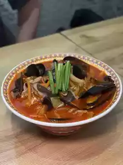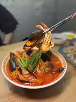 The broth is orange-red, spicy and flavorful, with noodles that also hold the soup well, accompanied by plenty of mussels, crab legs, wood ear mushrooms, bean sprouts, onions, and other soup ingredients, delivering a spicy and satisfying taste!