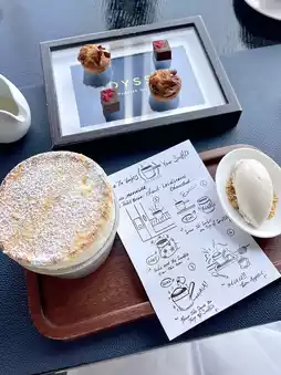 The soufflé is light and airy, with a sweet and tangy flavor. Enjoyed with ice cream, the contrast of hot and cold textures is delightful 🧡
