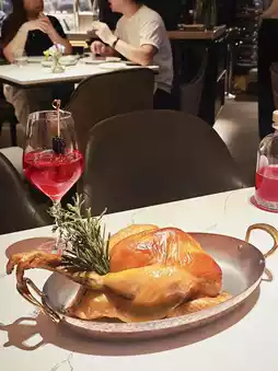 The main course features the restaurant’s signature roast chicken, perfectly cooked local yellow butter chicken with golden crispy skin and ultra-tender, juicy meat, served with chicken oil rice—each bite full of flavorful richness.