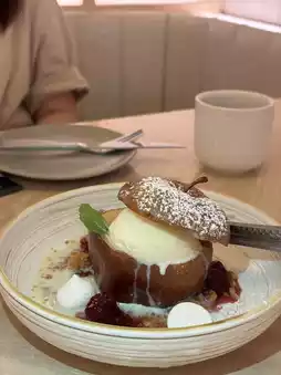 The apple is baked soft and soaked with buttery aroma π€£ The cinnamon flavor is prominent, paired with melting vanilla ice cream. Sweet and fragrant with a fresh touch π₯° Rich and layered texture π