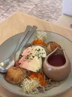 The scallops are fresh and thick, the soba noodles are chewy and springy, paired with chilled peach tomato soup. The fruity aroma is subtle, the tomato slightly sour, refreshing and appetizing, perfect for hot weather.