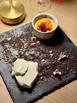 The dessert is exquisitely presented; the whiskey panna cotta is smooth in texture, with the aroma of alcohol and cream blending perfectly; the Spanish Catalonia caramel pudding is silky smooth with a flowing center, moderately sweet.