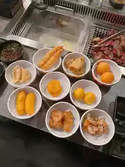 Fried items ๐ค included in the set ๐ฐ Japanese gyoza ๐ฅ karaage chicken nuggets ๐ fried shrimp ๐ฆ fried scallops, crispy banana ๐ takoyaki ๐ coconut lava balls ๐ฅฅ purple taro balls, fried fresh milk ๐ฅ