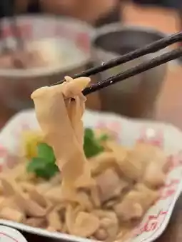 The moment it arrives, you can smell the caramel smoke aroma! The goose skin shines with an amber gloss, and the chef’s knife skills are superb—slices of skin are thin enough to be translucent, but the meat layer is thick😍 Biting into it, you first feel the crispy sugar-smoked skin, then the goose fat "sizzles" out, the meat is tender and smooth with a slight bounce! The biggest surprise is that the smoky aroma seeps into the bone crevices, paired with the shop’s secret spicy chili sauce (🌶️ mildly spicy and pungent), making it hard to stop eating!