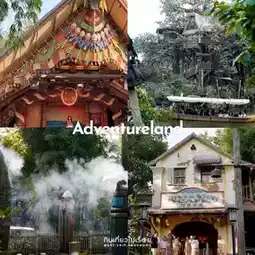 🛶 Adventureland emphasizes jungle adventures and boat rides.