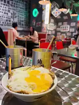 Causeway Bay's "No Compromise Skewers Local Skewer Tavern" features creative Hong Kong-style skewers and cha chaan teng flavors. For lunch, be sure to try the "Local Tossed Beef Char Siu Udon" ($88), served with a bursting triple-yolk egg. The udon is chewy and well-coated with sauce, the beef char siu is tender with a smoky aroma, and the sauce is rich and flavorful! For just an extra 5 cents, you can upgrade to a 1L iced lemon tea, adding a full sense of ceremony.
