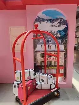The "AWA" exhibition has been held in Seoul, London, Tokyo, Melbourne, and Los Angeles, drawing over a million visitors cumulatively. This summer marks its first arrival in Hong Kong, running from July 15 to September 14 at The Mills. The venue features five major themed exhibition areas, each dominated by colors such as pink, red, blue, and orange. Over a hundred photography works from around the world are scattered across the "Hong Kong Theme Area," "Hotel Theme Area," "Doors and Facades Theme Area," "Swimming Pool Theme Area," and "Lighthouse Theme Area." Visitors can explore these areas throughout The Mills and take photos at spots like the pink hotel, the door and reception of The Grand Budapest Hotel, the pool diving board, the red and white striped lighthouse, nostalgic train seats, and a phone booth in the desert, capturing beautiful summer-themed photos and instantly transforming into movie characters!