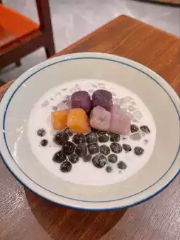 Chilled Duan Chun Zhen Taro Ball No. 4 🥣 A la carte $48 💰 Coconut milk 🥥 Transparent pearls, brown sugar pearls, taro paste, taro balls, purple sweet potato paste 🍠 The taro paste and purple sweet potato paste are sweet and fragrant 😌