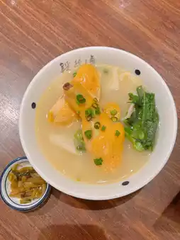 Signature Braised Beef Tendon Noodles (Thin Noodles) 🍜 A la carte $86 💰 The beef tendon is braised until tender and flavorful 🥩 The noodles are smooth, and the broth is rich with a slight spiciness 🌶️ With pickled mustard greens and oil lettuce, this is a very classic bowl of beef noodles 🤤