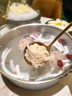 The bamboo fungus absorbs the soup, crunchy and tender at first bite, then releasing a sweet coconut aroma.