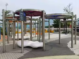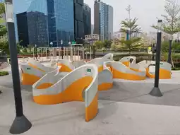 This is both a viewing platform overlooking Victoria Harbour and a stage for children to engage in social role-playing games. From the highest spectator seats to the lowest platform, you can walk, climb, slide, or of course, sit down and rest.
