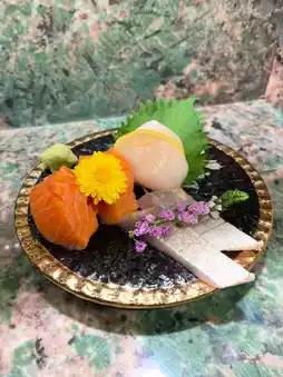 🌸 Three-color sashimi platter (salmon, scallop, deep-sea tilefish)