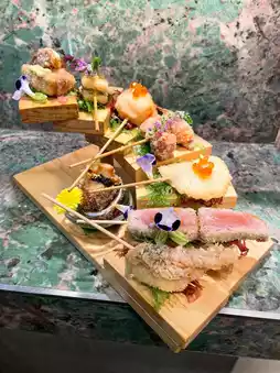 Soy-marinated bonito innards paired with cream cheese, wrapped in crispy seaweed, rich in flavor and perfect with alcohol.