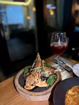 Cold tapas (fresh salad greens π₯ paired with Italian sun-dried tomatoes and balsamic olive oil); Hot tapas octopus π with a chewy texture; potato omelet rich in flavor; main course grilled lamb rack π, each bite tender with a hint of gaminess, served with green peppers, mushrooms, and creamy mashed potatoes, very satisfying; ring-shaped pasta rarely eaten on regular days, each piece accompanied by fresh crab meat π¦, flavors well blended.