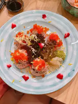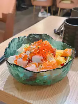 Assorted Sashimi Salad (small) 🥗 à la carte $58 💰 includes salmon roe, octopus 🐙 crab roe, amberjack, salmon, tuna, tamago 🍳 Chinese-style salad, salad greens 🥬 cherry tomatoes 🍅 sweet, sour, and slightly spicy 😛 refreshing and appetizing 💦