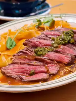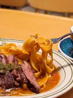 The pan-seared hanger steak was ordered medium rare. It looks great and has a rich beef flavor🐂. The fettuccine texture is also good, perfectly al dente, paired with a grilled sauce that includes plenty of mushroom slices.