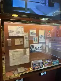 A 1920s-style tram featuring small exhibits, games, and even a mailbox inside.