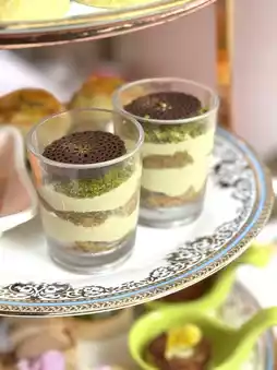 Soft chiffon cake layered with vanilla cream and pistachio mousse, paired with jasmine tea-infused yellow plums 🌸. The tangy and floral notes elevate the summer vibe instantly.
