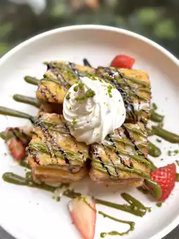1️⃣1️⃣ Pandan Kaya French Toast with Pistachio Sauce and Mixed Nuts