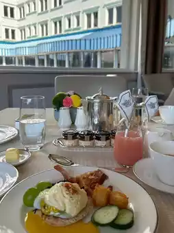 Breakfast was room service. Eggs Benedict and Chinese tea made the perfect combination!