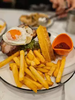 Secret recipe spicy chicken sauce chicken steak waffle sandwich with fries $98