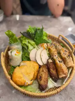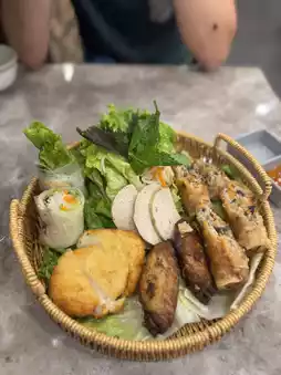 The rice paper skin is mild and slightly chewy, with a soft and elastic texture that perfectly wraps the filling and absorbs the sauce's flavor. The fresh shrimp is bouncy and sweet*, paired with cucumber strips, carrot strips, and lettuce, providing a crisp texture and subtle sweetness. Thai basil and mint leaves bring herbal freshness, the soul of Vietnamese flavor, perfect as a refreshing appetizer for hot weather, low-calorie and healthy.