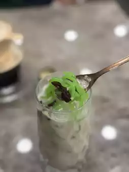 Sweet coconut aroma with a hint of milkiness and slight saltiness, cool and smooth, with a consistency between coconut water and coconut milk, not overly greasy. The green jelly or sticky rice made from pandan leaves has a herbal fragrance, similar to the mild sweetness of sticky rice, a unique Southeast Asian plant aroma. Perfect for cooling down.
